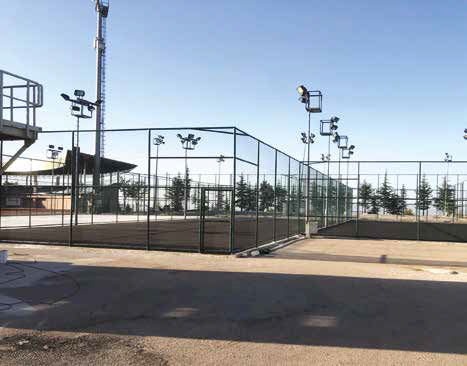 Spor sahaları aydınlatma sistemleri mevcut spor sahası tel örgü sistemine entegre edilir ya da harici aydınlatma direkleri kullanılarak saha çevresine montaj edilir.