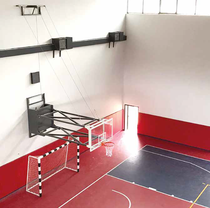 Spor salonu duvarına oluşturulan çelik konstrüksiyon üzerine uzanan ve istenilen zamanlarda manuel yada motorlu olarak yukarı katlanabilen basketbol potasıdır.