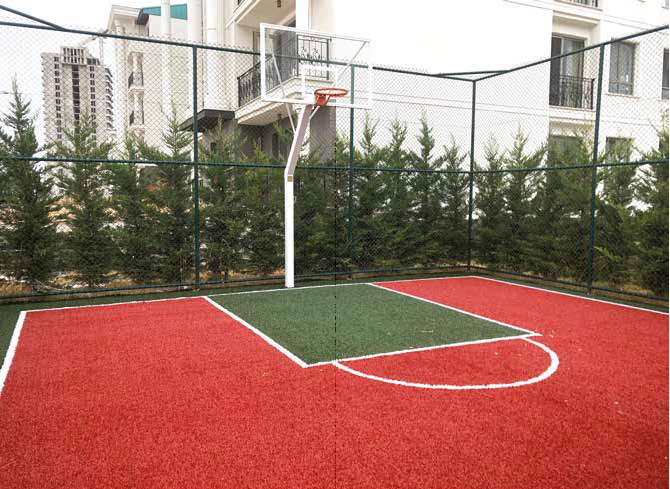 Çok amaçlı spor sahası zemin kaplaması yapımında 20- 26 mm hav yüksekliğinde sentetik çim malzeme kullanılmaktadır. Bu sistemde sadece kum dolgusu yapılmaktadır ve bu sayede spor müsabakalarında kullanılan toplar sentetik çim malzeme üzerinde sekebilmektedir.
